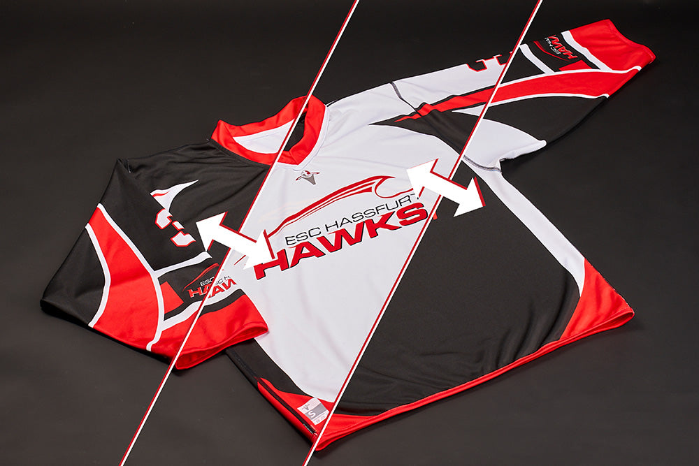 Bei der Sublimation wird die Farbe unter Hitze in die Faser eingebracht – für ultraleichte, atmungsaktive Trikots ohne spürbare Kanten, ohne Abplatzen und mit höchster Waschbeständigkeit. Streifen, Farbverläufe und Ton-in-Ton-Muster lassen sich als All-Over-Design brillant umsetzen, Pantone-genau in euren Vereinsfarben. Ideal für Fußball, Handball, Basketball, Volleyball, Eishockey, American Football, Radsport und Laufsport. Nummern & Namen integrieren wir regelkonform direkt im Layout oder kombinieren sie modular mit Transfers – perfekt für Kleinstserien und planbare Nachläufe.